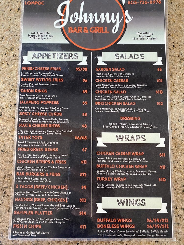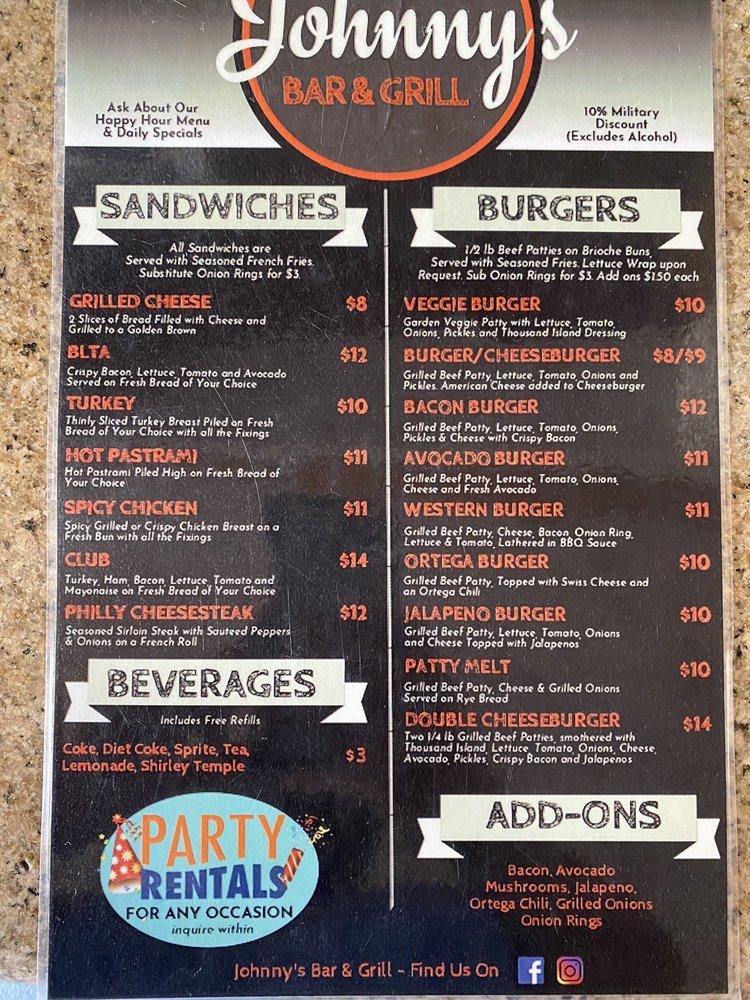 Johnny's Bar & Grill Menu